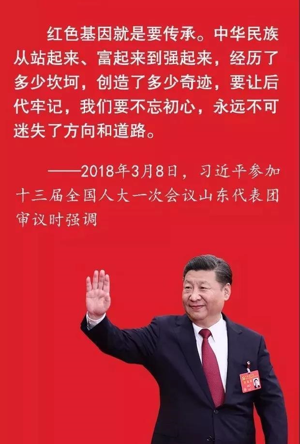 我们是降生在一个新的时代,我们不用为吃不饱饭而发愁,不用为没有衣服穿而受凉而发愁,但是先辈们的信念,先辈们留下的传统美德,这些我们不能丢,我们要把它们传承下去,把他们发扬光大。红色血脉、红色基因,承载着无数革命先烈的赤胆忠诚与奋斗牺牲,是人民军队从胜利走向胜利的传家宝,激励着我们在新的起点上把革命先辈开创的伟大事业不断推向前进。