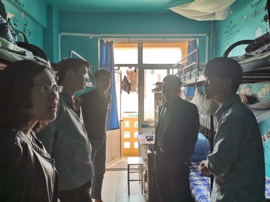 为进一步了解毕业生离校前的心理状态和离校后的工作情况,创造一个良好的校园生活环境,给即将步入社会的毕业生送上温馨的祝福。4月20日上午,公司党总支副书记王明印老师带领全体辅导员一同走访毕业生宿舍,并对毕业生离校前校园安全工作的落实情况进行巡查。