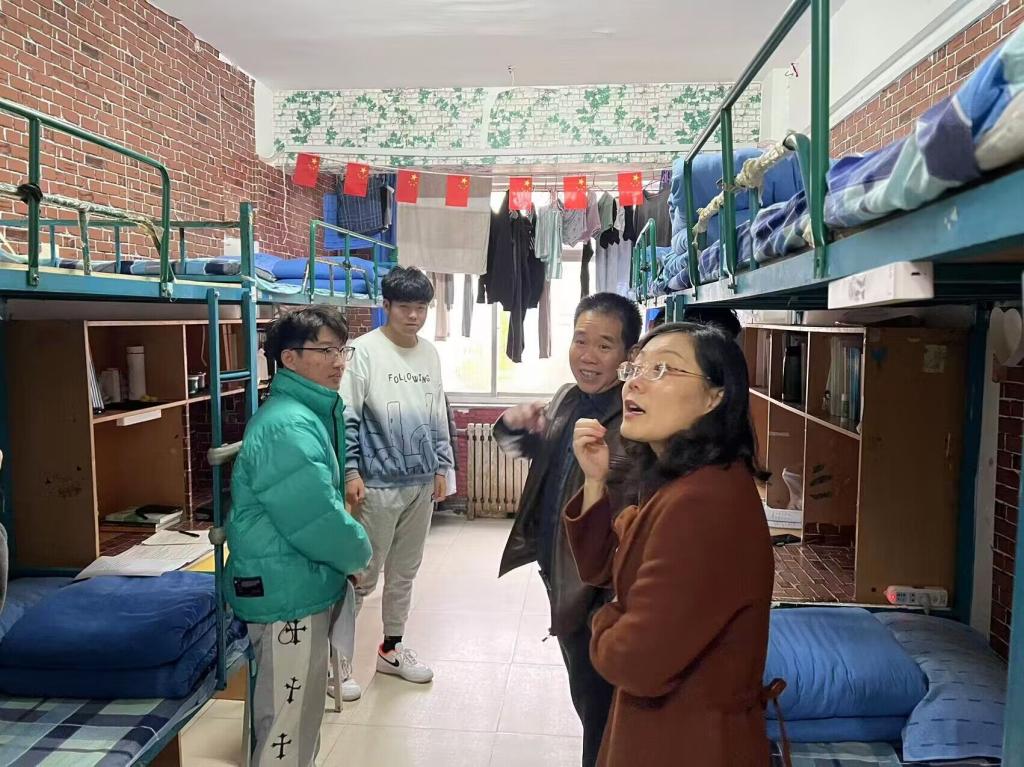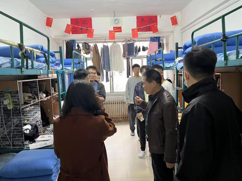 走访过程中,王书记与同学们亲切交流,叮嘱同学们要严格遵守疫情防控期间校园管理规定,同时对宿舍各方面进行了严格细致的检查。随后,祝老师仔细询问了同学们宿舍存在的各项问题,关心同学们的宿舍生活和思想动态并嘱咐同学们要安全用电、保持宿舍环境干净。此次走访不仅对员工宿舍内、外的卫生状况进行检查,还对宿舍可能存在的安全隐患进行了重点排查,针对是否违反校规使用大功率电器、宿舍防火防盗措施是否到位等可能出现的问题,领导、老师们认真细致地落实检查工作,不放过每个死角。最后,王书记强调,良好的宿舍氛围、安全和卫生的宿舍环境对同学们的影响至关重要,各班应落实好学院的每一项规章制度,员工干部应积极响应学院号召,为大家共同创造安全、整洁、文明的住宿环境。